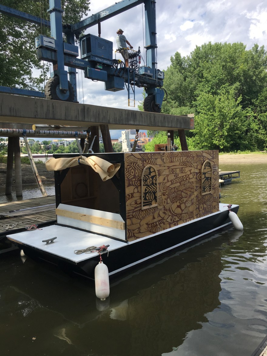 First thing’s first: we are not the first. We are following a long historical line of adventurers, workers, escapees, romantics, knuckleheads, and fortune-seekers, everyone from farmers in the early days of Westward expansion, to heroes of alternative living, the Hubbards, a couple who lived on the river in a shanty boat for more than a decade. The artist SWOON and her flotilla of river rats put in (we found out to our glee) at the very same yacht club where we put in, the St. Paul Yacht Club in Minnesota. So did a Russian man who made his vessel out of a bunch of soda bottles and chain link fence. According to one of the people who run the yacht club this soda bottle pioneer was stopped by the coast guard, and despite the fact that his craft was registered, he was indefinitely dry-docked because his boat was bleeding soda bottles up and down the river. He apparently tried to argue that it was okay because he had a ready supply of extra bottles to replace each one that drifted away in his wake.